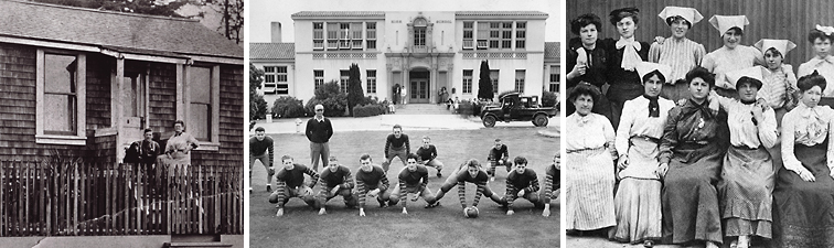 1907 Daly City Home (built after '06 quake), Jefferson HS 1933 with Football Team, Fuse Factory Workers 1902.